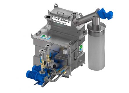 The Evac EcoScreen unit mechanically separates most of the solid matter from the wastewater. Separating solids before the MBR is strongly recommended because solid matter may cause problems in the MBR unit. Separating solids also diminishes the organic load in the sewage by approximately 10–20%. If a screening unit is used, a macerator is not needed to chop the solid matter.
