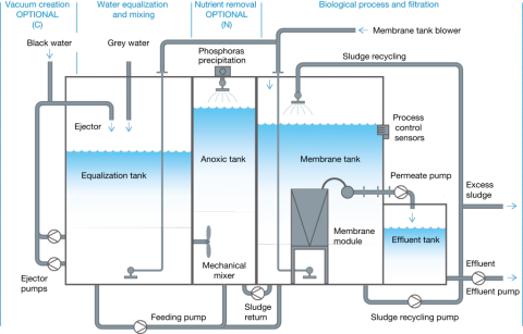 Operating principle of the Evac MBR, membrane bioreactor