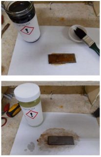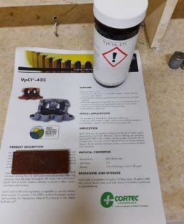 Evaluation: VpCI-423 was applied directly by brush on a 1″ x 2″ and 3 mm thick carbon steel floor, which presented rust on its surface.